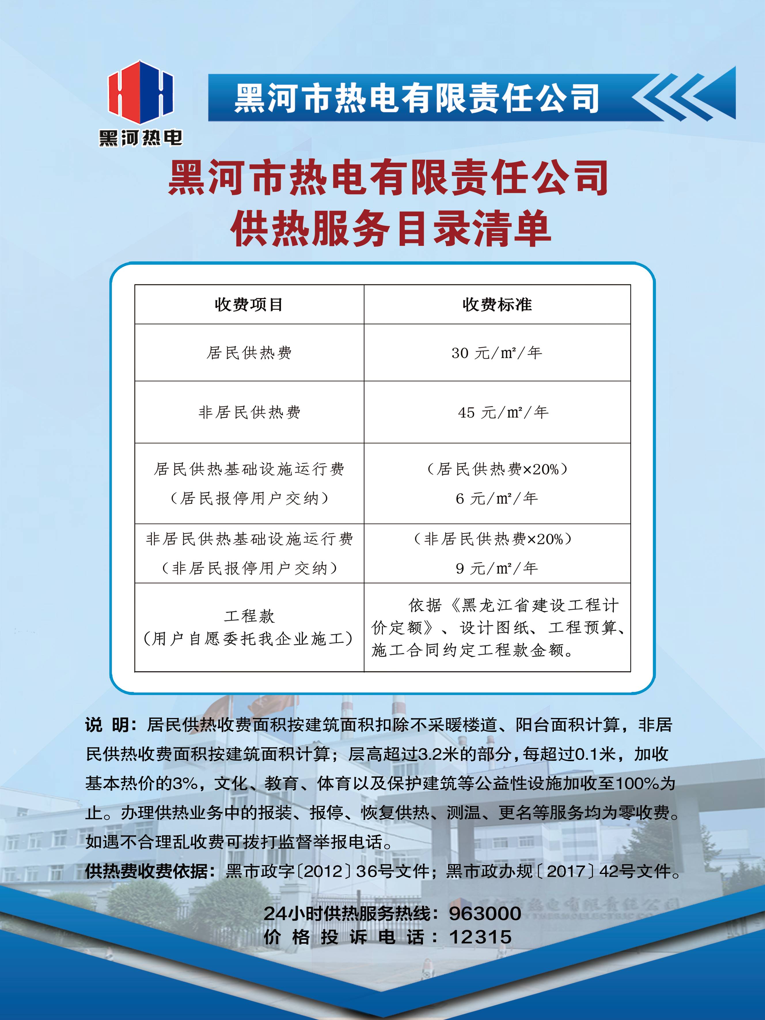 公示热费价目表